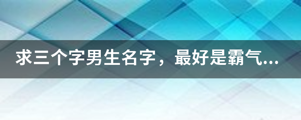 追问: 不是????求三个字男生名字,最好是霸气的,冷酷的。